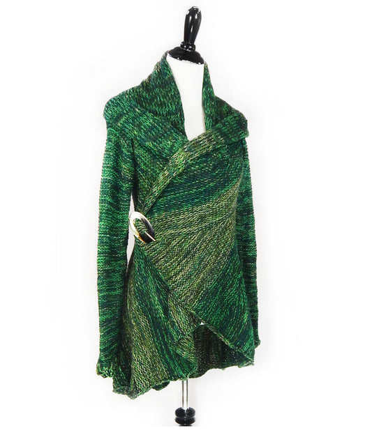 Fine Alpaca Wool Knit Cardigan Tailored Peacoat Elegant Sweater Versatile Wrap Green